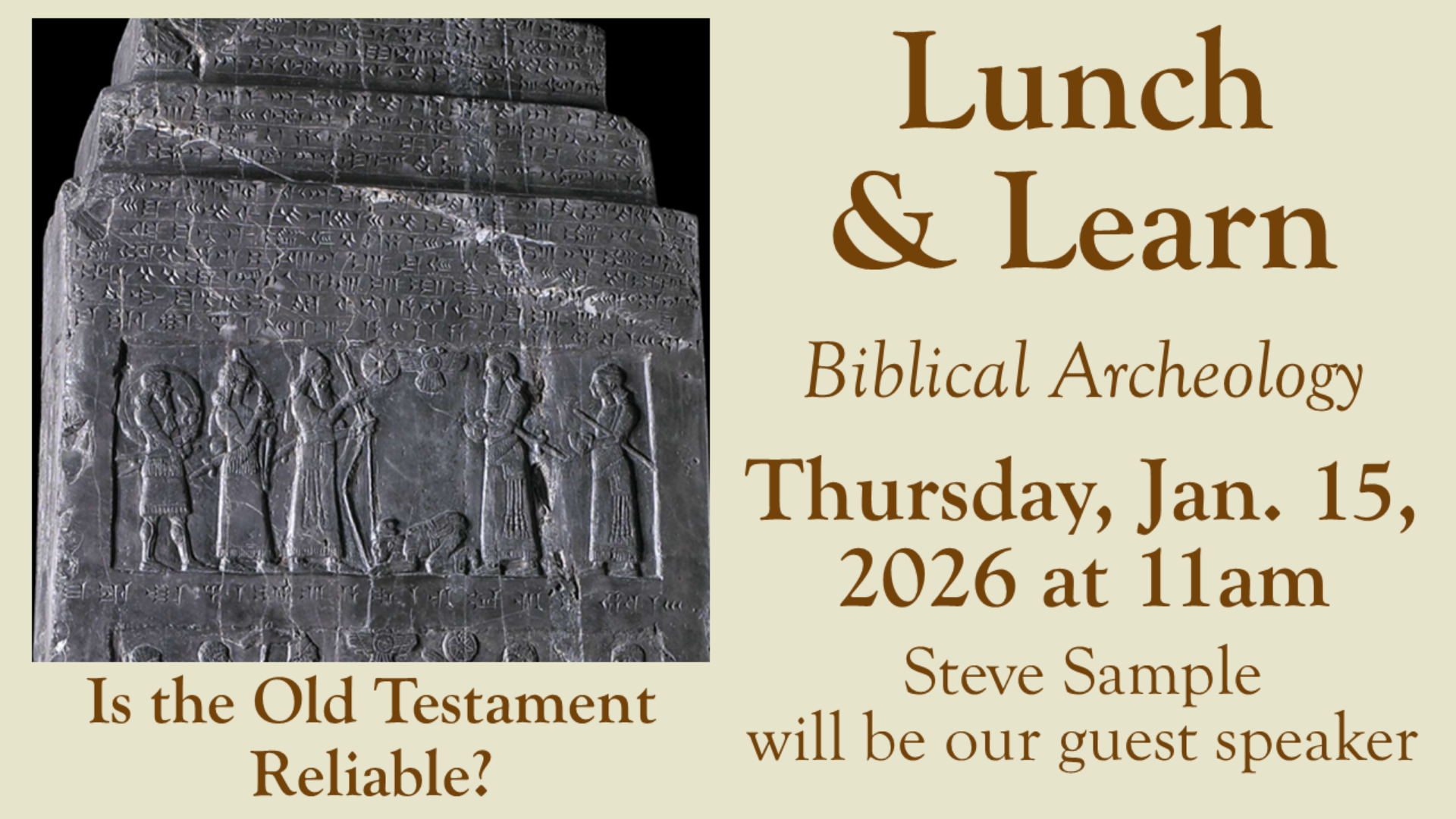 Steve Sample gave a presentation on Biblical Archeology, specifically “Is the Old Testament Reliable?”